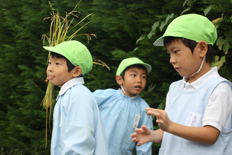 6月に年長組が田植えをした雁音米の稲刈りをしました。