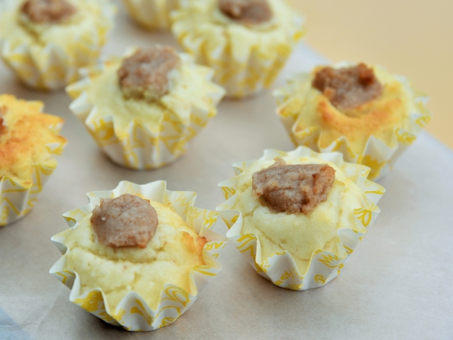 落花生の餡を作り、雁音米の米粉と合わせた、落花生と米粉のなかよしカップケーキ♪