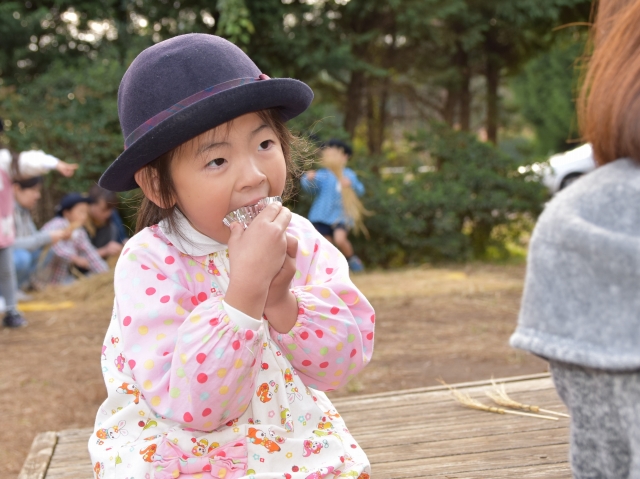 幼稚園からは石窯に火を入れて、お芋ほりのさつまいもで焼き芋作り。